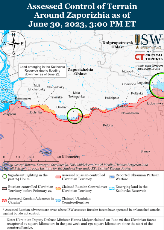Українські війська продовжили контрнаступальні дії на адміністративному кордоні між Донецькою та Запорізькою областями. Так, ЗСУ досягли невизначеного часткового успіху на рубежі Левадне — Приютне та зміцнилися на досягнутих ділянках лінії.