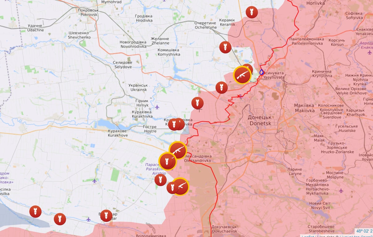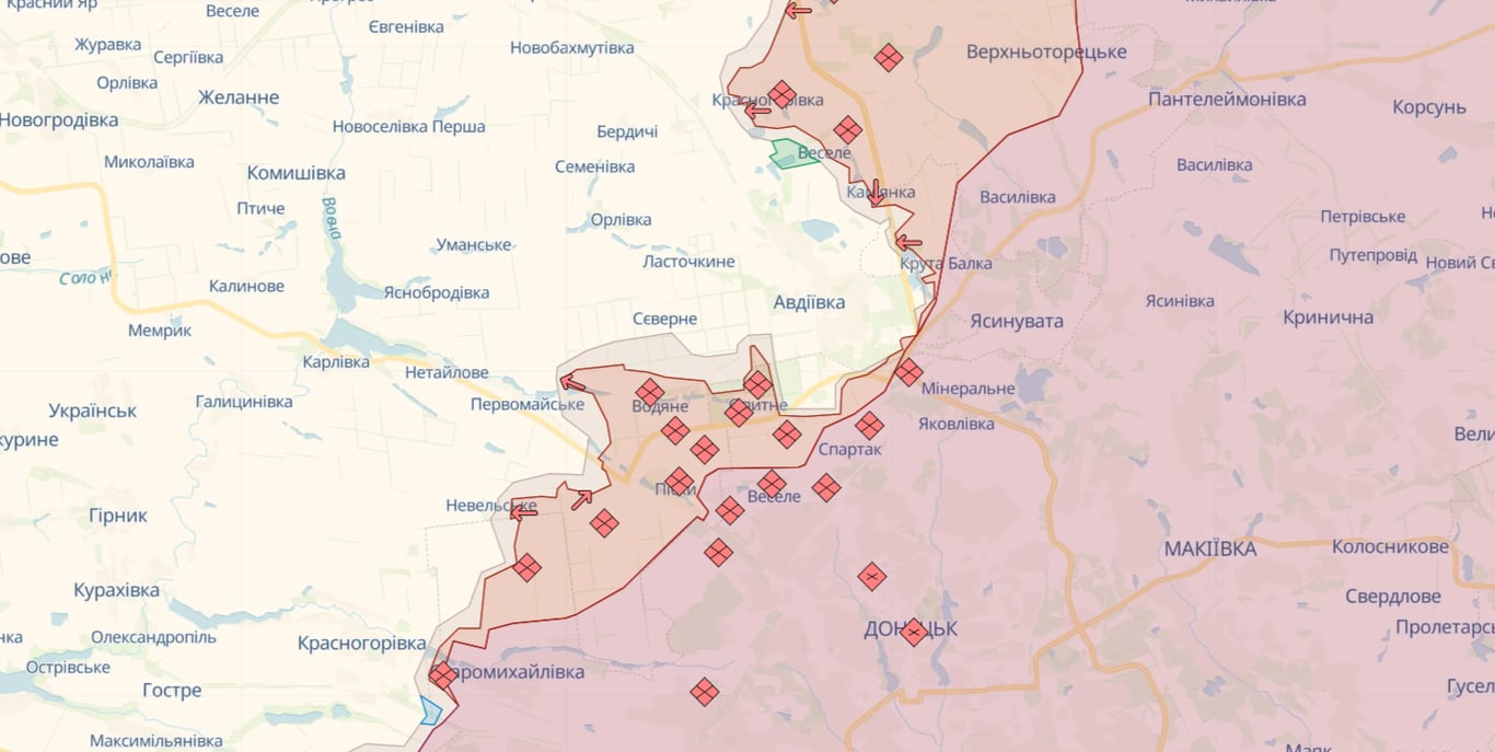 Українські та російські сили продовжували бойові дії на лінії Авдіївка — Донецьк, де українські сили просунулися на північ від Авдіївки, на захід від Новобахмутівки та в Красногорівку.