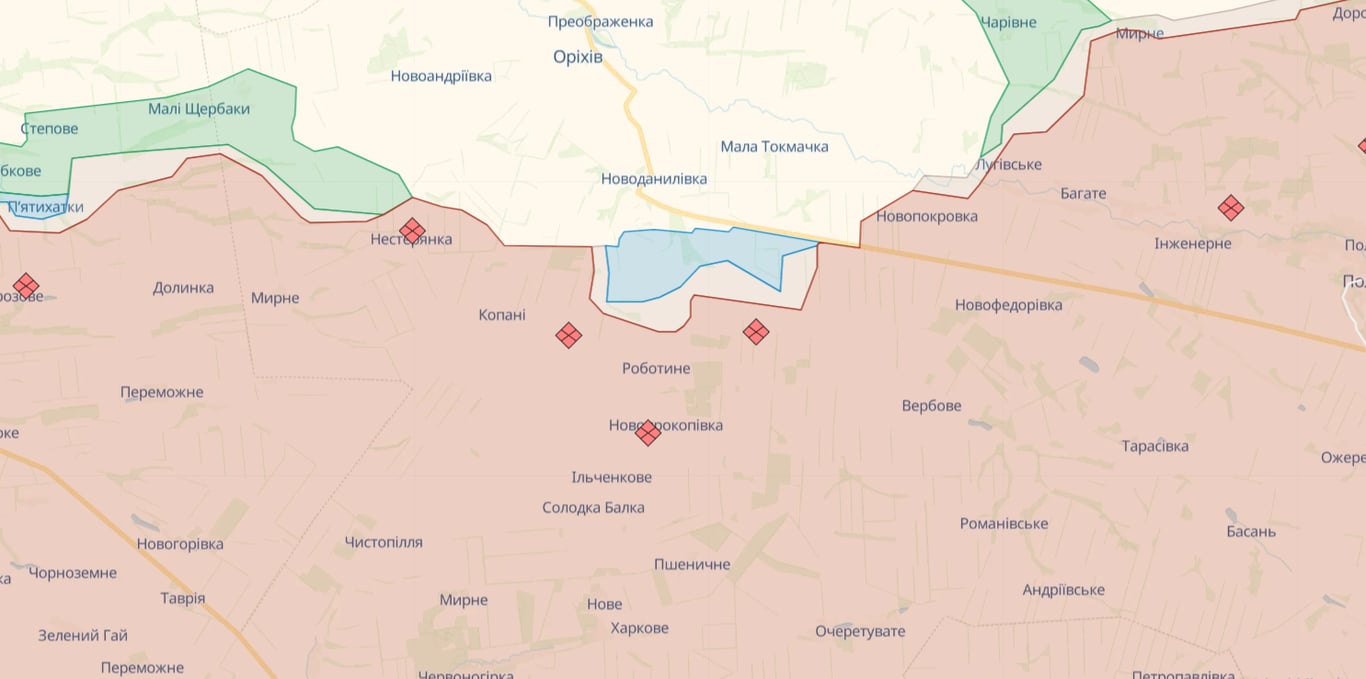 На Запорізькому — тривають бої північніше Роботиного, ЗСУ мають частковий успіх.