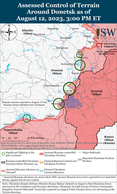 В Інституті вивчення війни (ISW) зазначають, що українські війська продовжували контрнаступальні дії щонайменше на двох ділянках фронту та, як повідомляється, здійснили тактично значущі наступи вздовж адміністративного кордону між Запорізькою та Донецькою областями.