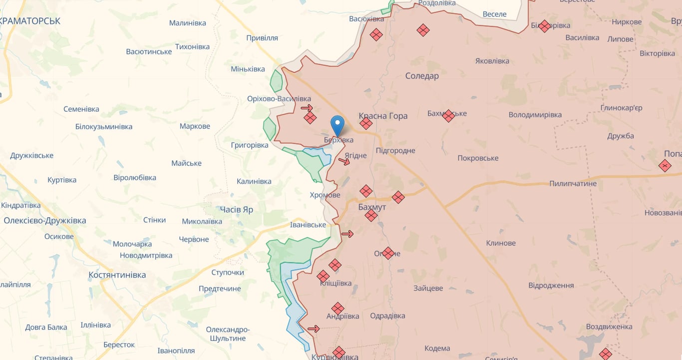 На Бахмутському відтинку продовжуються бої на пд-зх від Берхівки та на зх та пн-зх від Кліщіївки.