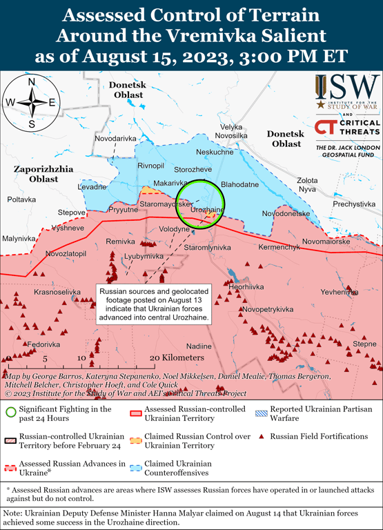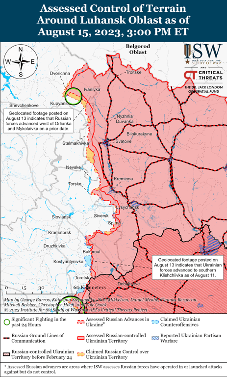 В Інституті вивчення війни (ISW) зазначають, що українські війська проводили контрнаступальні операції щонайменше на трьох ділянках фронту і, як повідомляється, просунулися в Луганській області та на заході Запорізької області.