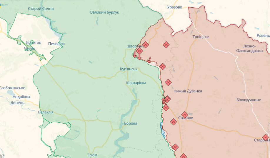 Українські війська вели наступальні дії вздовж лінії Куп’янськ-Сватове-Кремінна і, як повідомляється, просунулися. Координати, опубліковані російським мілблогером, показують, що українські сили просунулися на південь від Діброви (7 км на південний захід від Кремінної).