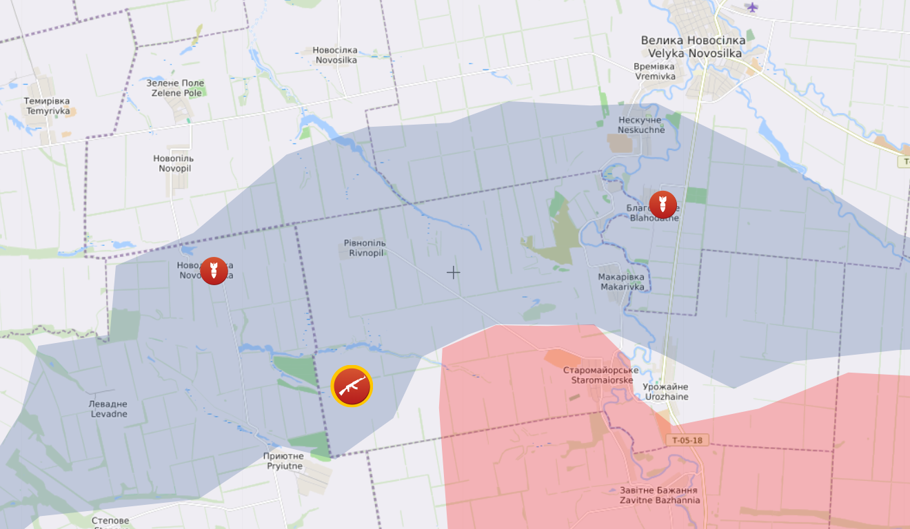 Українські військові продовжують наступальні операції на кордоні між західною Донецькою та східною Запорізькою областями та досягли прогресу. За даними російських джерел, ЗСУ наступали в напрямку Урожайного (10 км на південь від Великої Новосілки) і просунулися в районі Новодонецького (13 км на південний схід від Великої Новосілки).