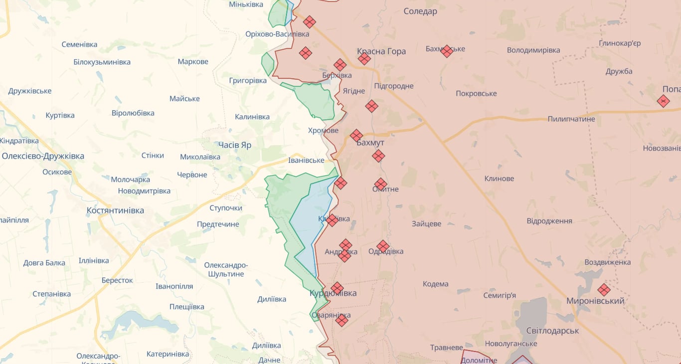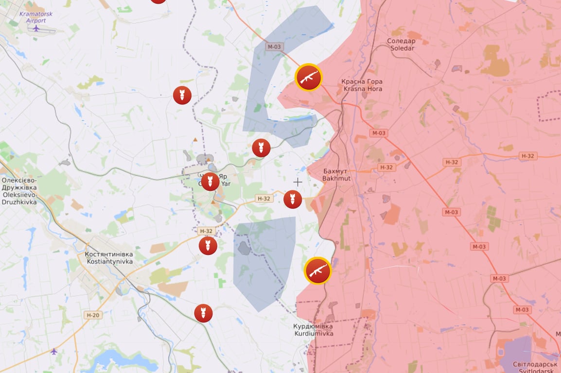 У Генштабі ЗСУ повідомили, що тривають запеклі бої на напрямках Оріхово-Василівка — Парасковіївка (до 8 км на північ від Бахмута) та Кліщіївка — Андріївка (7-10 км на південний захід від Бахмута).