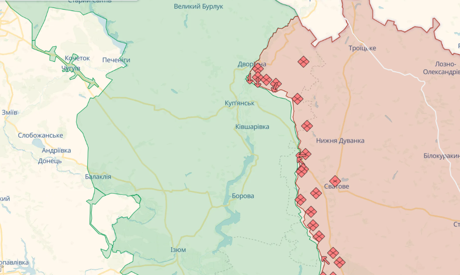 На Куп’янському напрямку артилерійських і мінометних обстрілів противника зазнали населені пункти Дворічна, Синьківка, Кислівка, Берестове Харківської області.