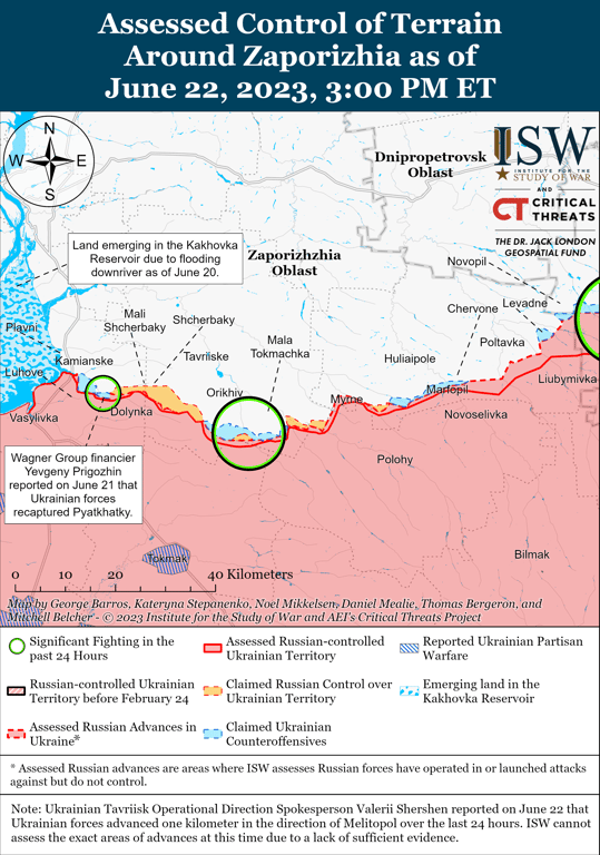 Також українські та російські війська продовжили наступальні дії на адмінмежі між Донецькою та Запорізькою областями. Речник українського Таврійського угруповання військ капітан Валерій Шершень зазначив, що українські війська просунулися до кілометра в районі Донецько-Запорізького кордону та на заході Донецької області.