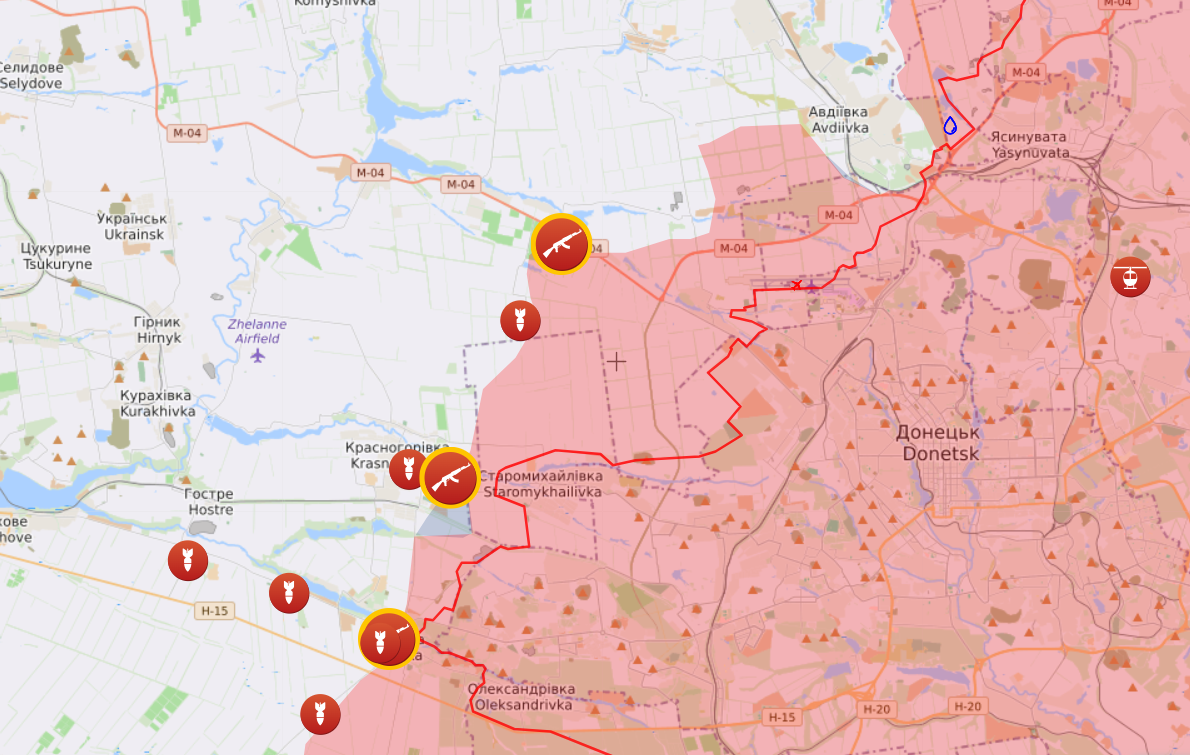 - поблизу Первомайського, Красногорівки на Авдіївському та Мар'їнки й Рівнополя на Мар'їнському напрямках.