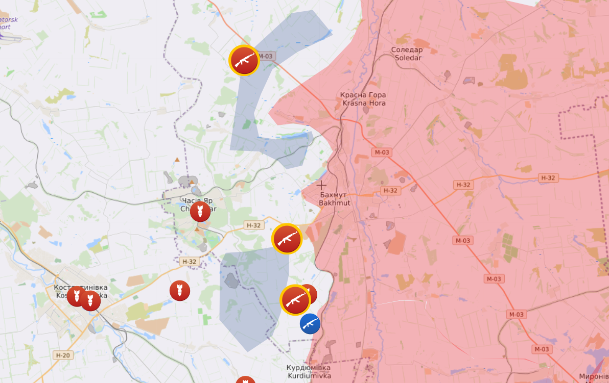 Генштаб ЗСУ повідомив, що українські сили проводили наступальні операції на північ і південь від Бахмута і що російські сили відступили з Андріївки (20 км на південний захід від Бахмута і безпосередньо на південь від Кліщіївки).