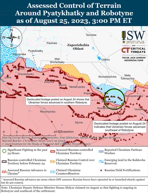 Також ЗСУ станом на 26.08.2023 мають успіхи на відтинках Новоданилівка — Новопрокопівка та Мала Токмачка — Очеретувате.