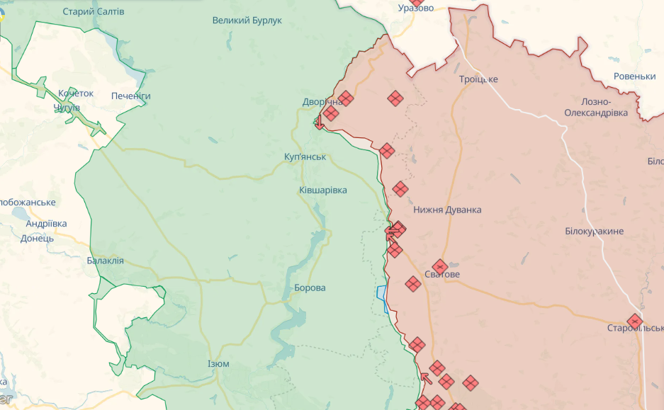 На Куп’янському напрямку артилерійських і мінометних обстрілів зазнали понад 10 населених пунктів, серед них: