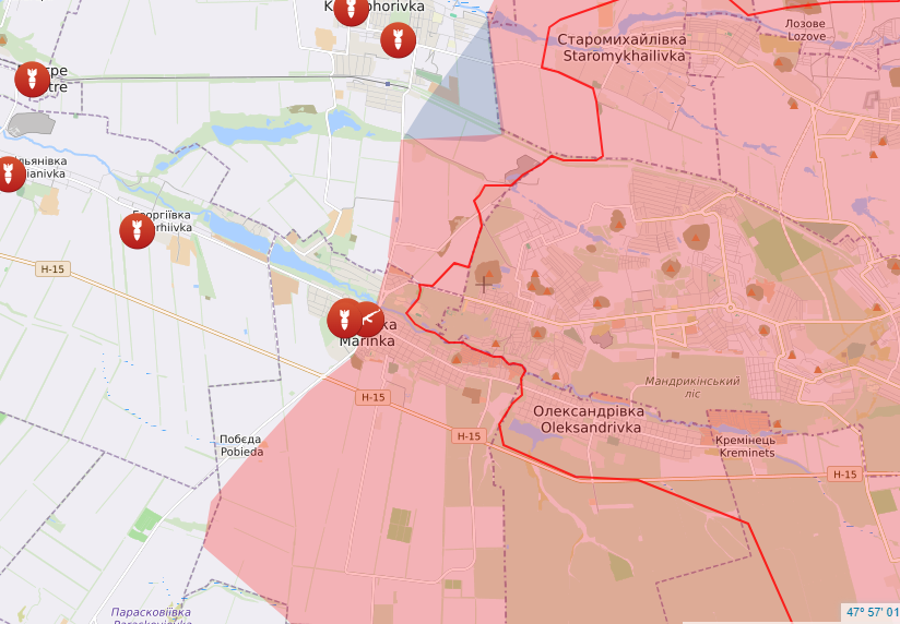 На Мар’їнському напрямку сили оборони продовжують стримувати наступ російських військ в районах Мар’їнки та Красногорівки. Ворог завдав авіаційних ударів в районі Красногорівки.
