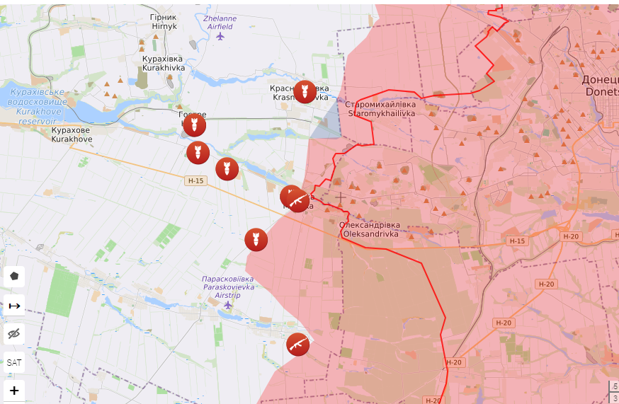 - Новомихайлівка (36 км на південний захід від Авдіївки).