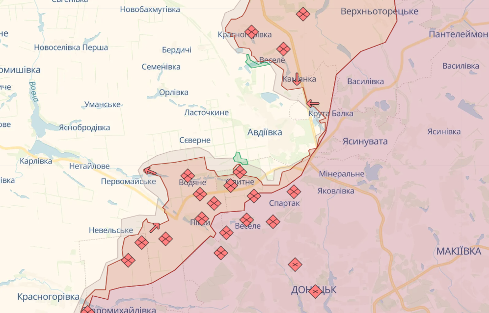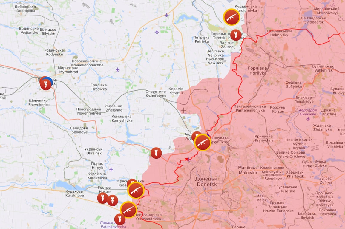 - на північний схід від Диліївки на Бахмутському напрямку, а також Авдіївки на Авдіївському та Мар'їнки й Красногорівки на Мар'янському відтинках.