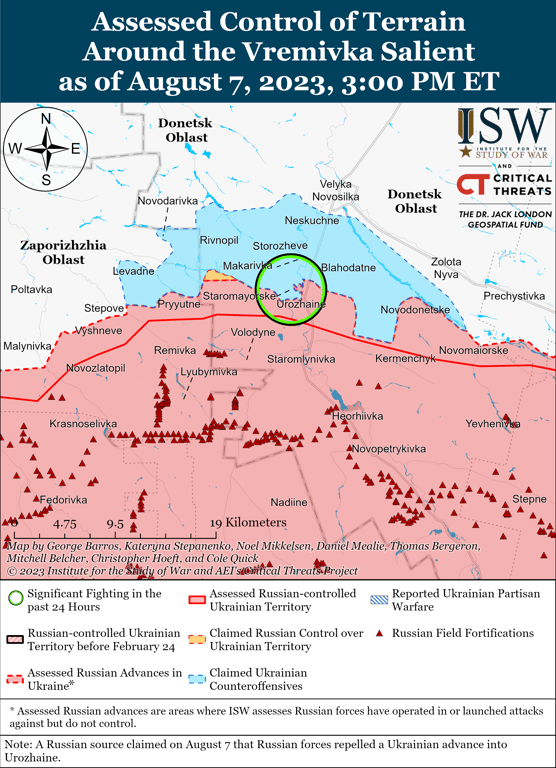 Маляр також зазначила, що українські війська продовжують успішні наступальні дії на Мелітопольському напрямку (захід Запорізької області) та зміцнюють позиції поблизу Малої Токмачки (10 км на південний схід від Оріхова) та Роботиного (15 км на південь від Оріхова).