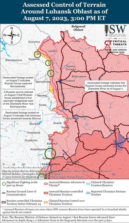 В Інституті вивчення війни (ISW) зазначають, що російські війська вели наступальні дії на рубежі Куп’янськ — Сватове — Кремінна і просувалися вперед. На геолокаційних кадрах видно, що окупанти захопили Новоселівське.