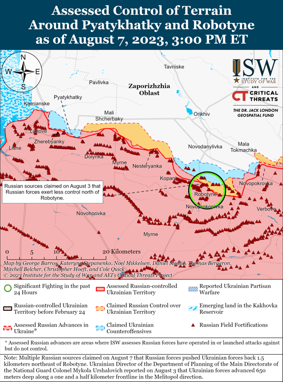 На Запорізькому напрямку тривають бої біля Роботиного та Вербового. Уточнено ЛБЗ, проте ці зміни умовні. В тому районі ситуація вкрай динамічна.