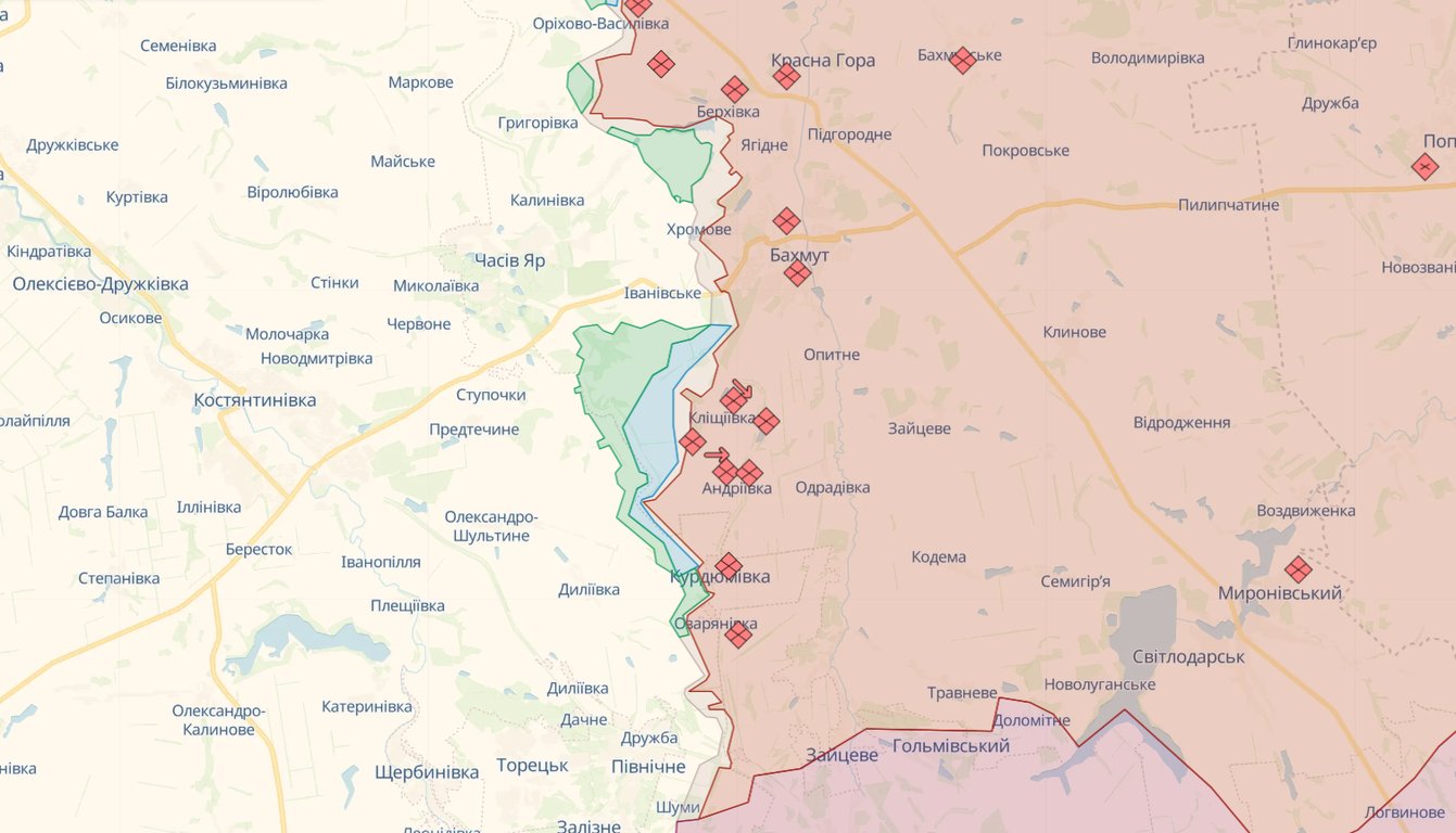 На Бахмутському напрямку взято під контроль висоту 233.3 в районі Кліщіївки, біля 215.7 тривають бої. Сили Оборони продовжують здобувати успіх на цій ділянці. Ворога відкинуто в районі Новодарівки.