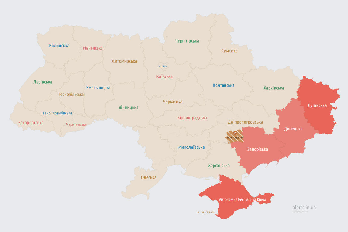 Вночі, 19 червня, Україні в "червоних" областях все ще зберігається загроза ракетного обстрілу. Також пролунали вибухи в Херсоні попри те, що тривога в області не оголошена.