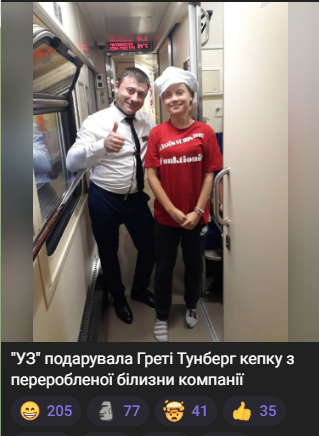 Відомо, що Грета прибула до України залізницею. Компанія "Укрзалізниця" зробила екоактивістці подарунок.
