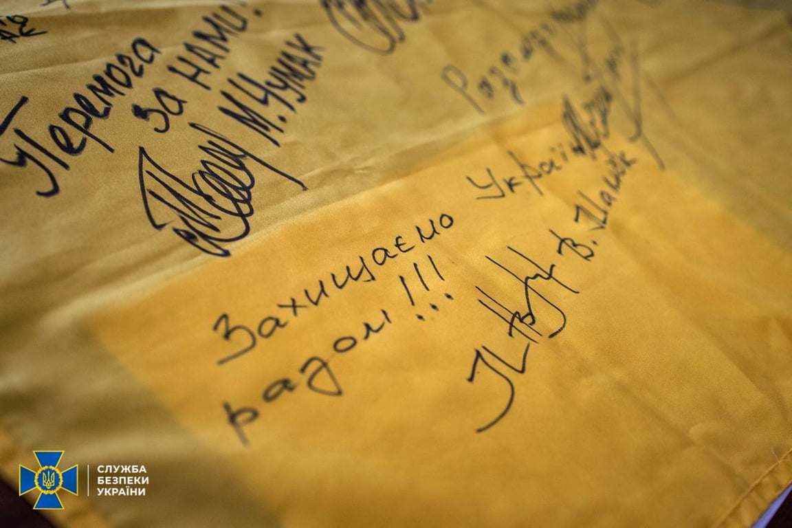 Зазначається, що окрім Голови СБУ Василя Малюка, прапор підписали інші бойові побратими — представники Сил безпеки та оборони України.
