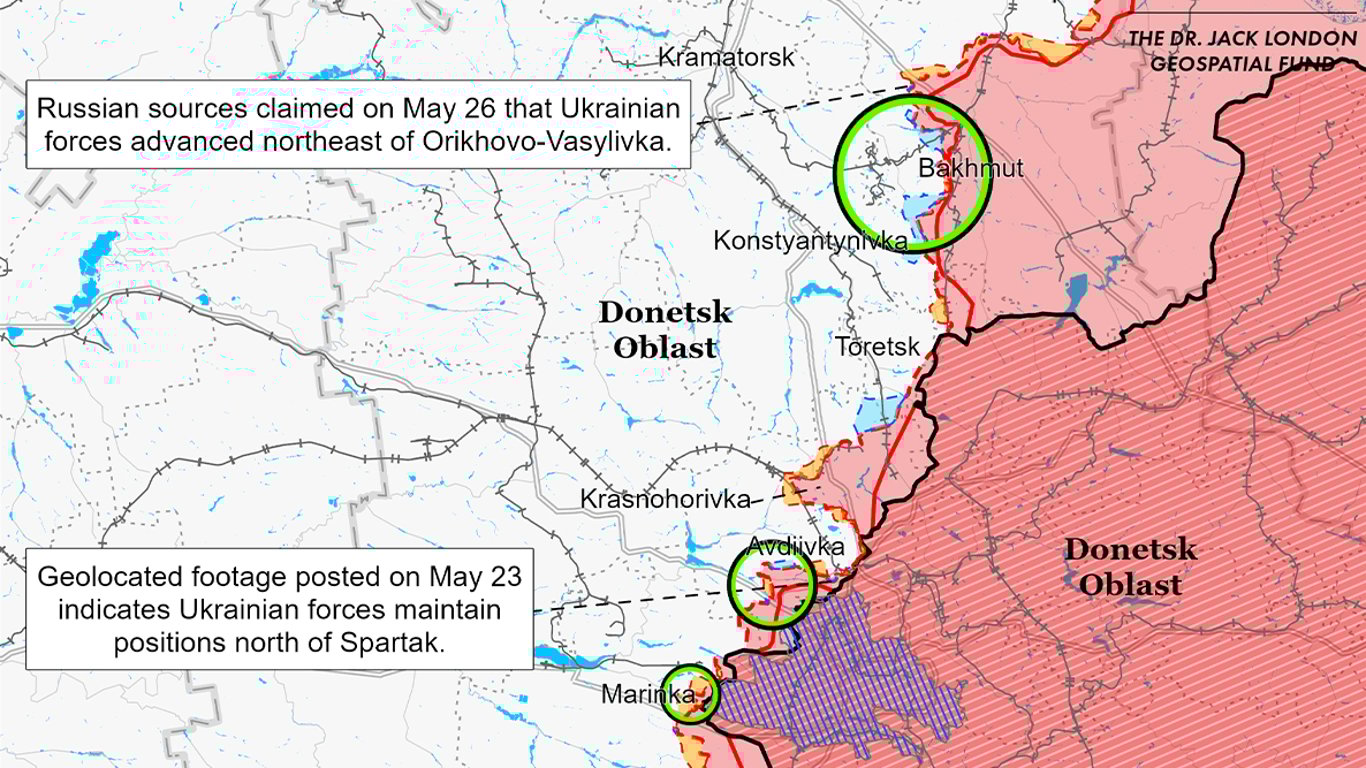 Однак російський військовий блогер стверджував, що російська армія відновила втрачені позиції на півдні від Первомайського. Також він додав, що бої у неділю, 28 травня, точилися біля Водяного (7 км на південний захід від Авдіївки).