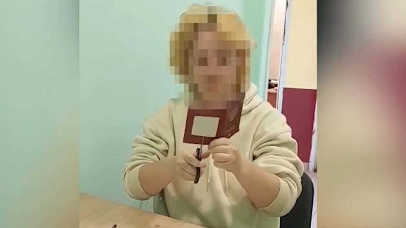 "Дівчина добровільно перетворила документ з двоголовим стерв’ятником на кроваво-червоній обкладинці у звичайну рвань", — йдеться у повідомленні.