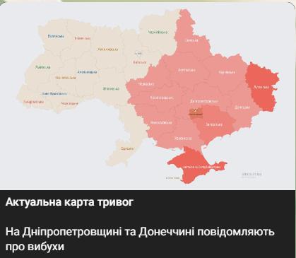 Вночі, 8 липня, вибухи лунають у Дніпропетровській області. Також в Україні досі триває масштабна повітряна тривога.