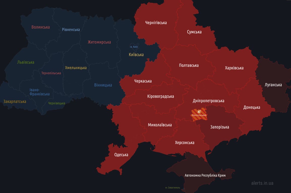 Оновлено 00:48. Попри відбої, у деяких областях України тривога все ще триває.