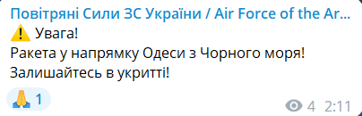 Оновлено 02:13. Ракетна загроза для Одеси.