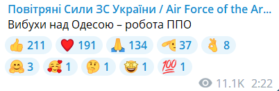 Оновлено 02:10. Вибухи на Одещині. Попередньо, ППО.
