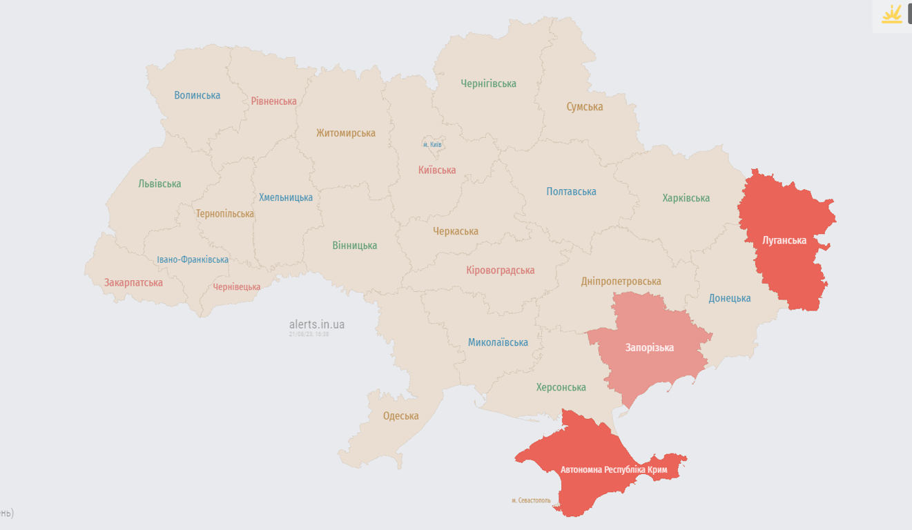 Наразі повітряна тривога оголошена лише в Запорізькій та Луганській областях.