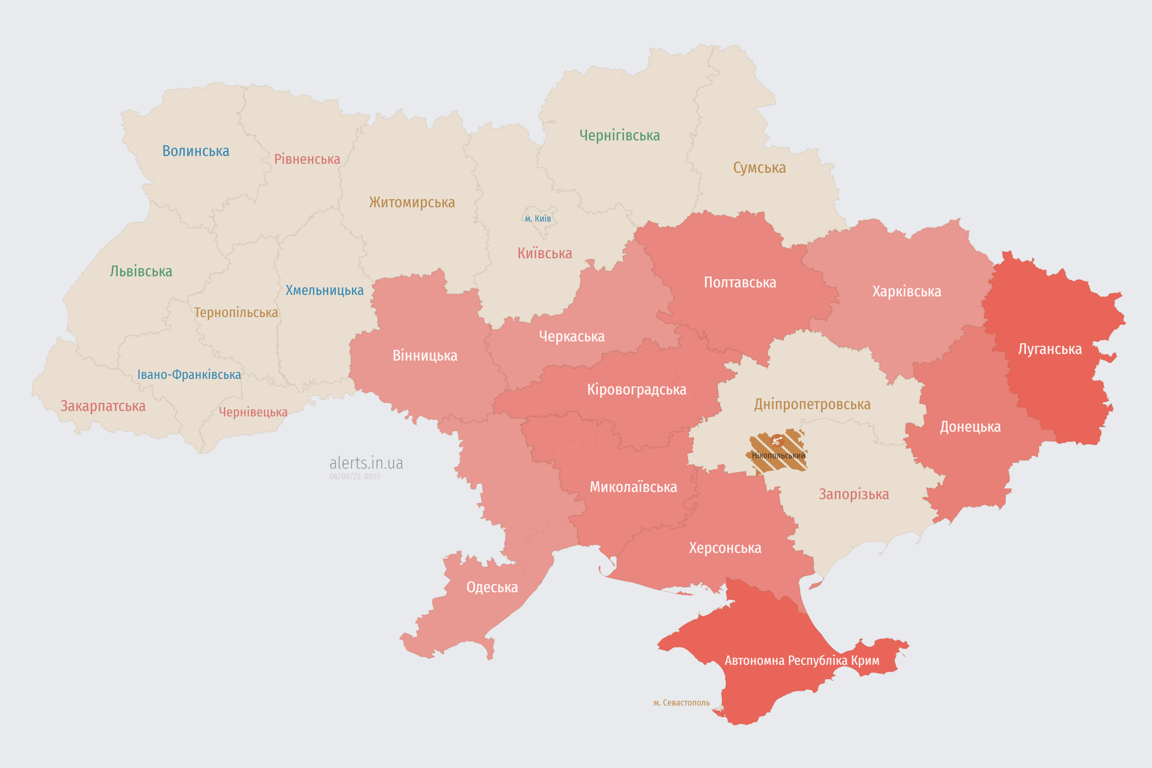 Вночі, 6 серпня, з'явилася інформація про запуск ракет із моря. В Одеській області оголосили про ракетну небезпеку. Також в більшості областей України триває повітряна тривога.