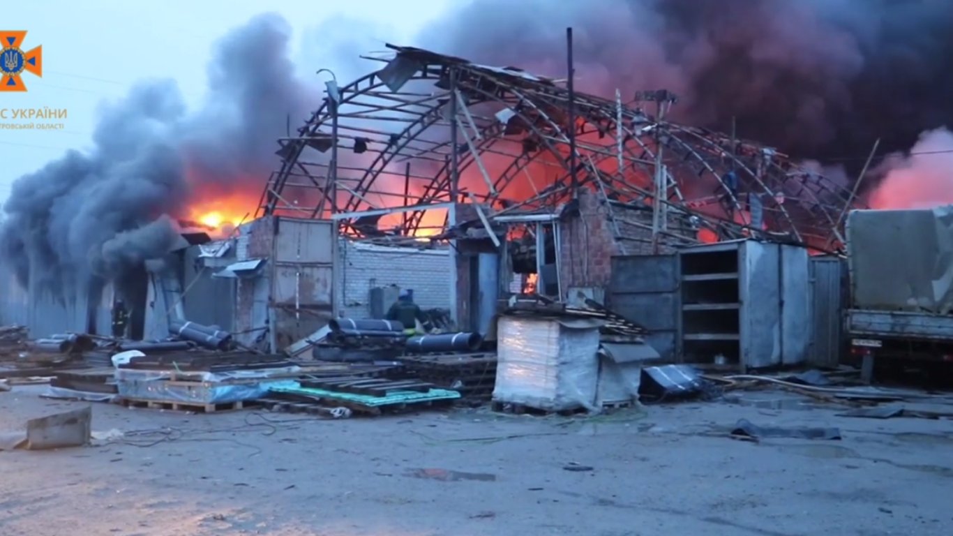 У ніч проти 28 квітня стався ракетний обстріл Дніпра. Одна з ракет поцілила в ангар з будівельними матеріалами, внаслідок чого виникла пожежа на площі 400 м кв.