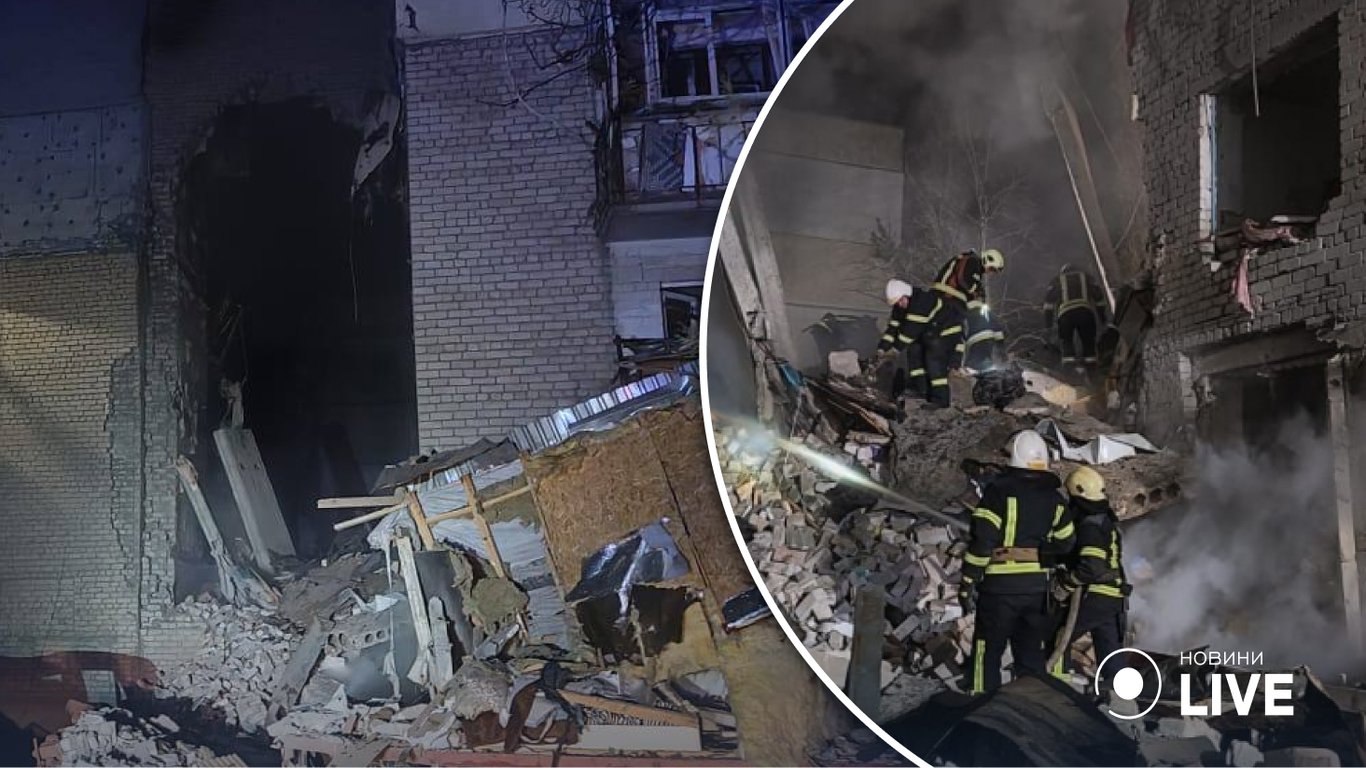 Ракета зруйнувала усі п'ять поверхів будівлі. Під завалами перебувають люди.