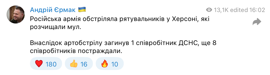 Окупанти обстріляли рятувальників у Херсоні, є загиблий