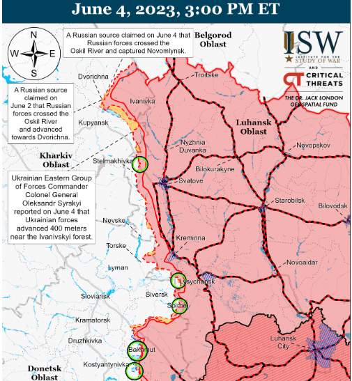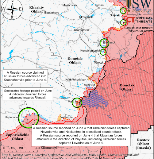 За даними аналітиків Інституту вивчення війни, Збройні сили України просунулися на запорізькому напрямку і, ймовірно, в деяких місцях прорвали першу лінію оборони росіян.