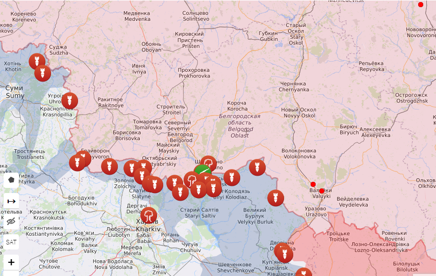 На карті онлайн-проєкту Liveuamap можна побачити місця російських ударів не тільки на прифронтових територіях, а й місця, де здійснювалися обстріли українських тилових міст та сіл. Ці дані оперативно оновлюються командою проєкту.