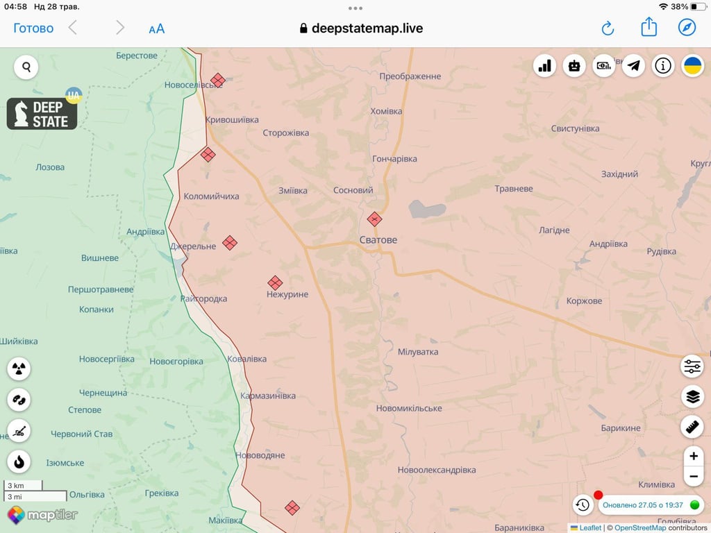 Сватівський напрямок — росіяни мають успіх вглиб до 1 км південніше Масютівки. Бої в лісах складні, тим паче, що жодна сторона не має значної переваги в артилерії. Натомість у ворога є перевага у дронах.