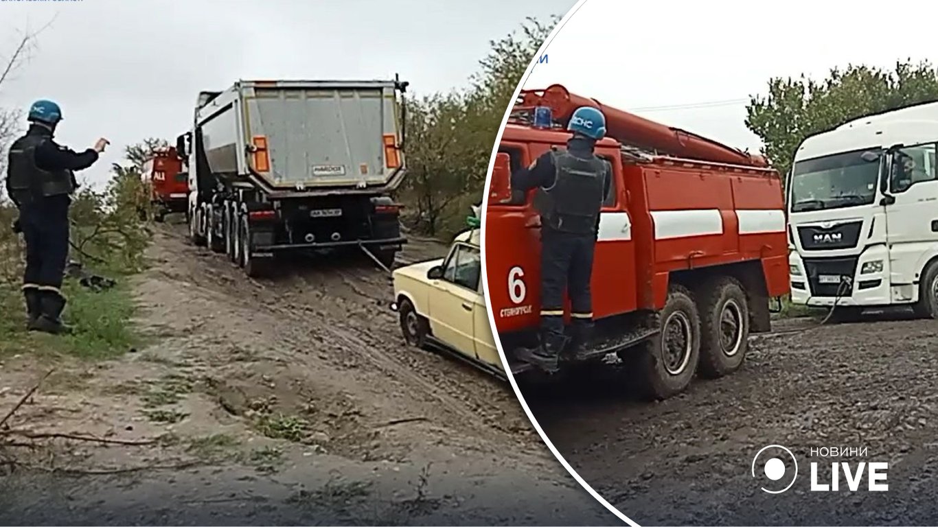 "У зв'язку з різким погіршенням погодних умов — сильними зливами, які спостерігалася на території Запорізької області, об'їзну ґрунтову дорогу у селі Кам'янське розмило. Водії опинилися у пастці без жодної можливості подолати цю ділянку шляху. Співробітникам Служби порятунку вдалося відбуксувати одну вантажівку та супроводити два легкові автомобілі на тверде автомобільне покриття", — йдеться у повідомленні.