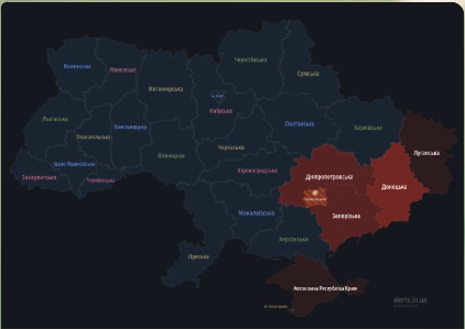 Мапа повітряних тривог виглядає так: