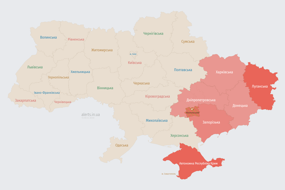 Оновлено 00:00. В низці східних областей України оголошено повітряну тривогу. Раніше Повітряні сили повідомляли про ракетну небезпеку в Дніпропетровській та Донецькій областях.