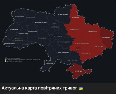 В Україні, 24 серпня, оголосили про активність російської авіації та загрозу застосування балістики. Повітряна тривога охопила більшість областей України.