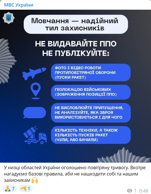 Оновлено 00:49. В МВС нагадують базові правила поведінки під час роботи ППО.