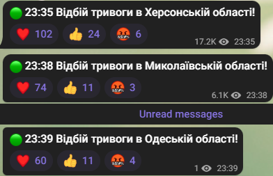 Моніторингові канали повідомляють, що на півдні країни існує ракетна небезпека.