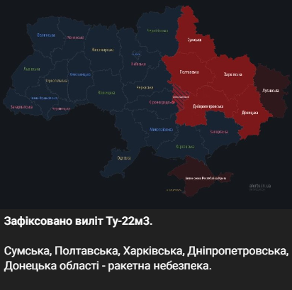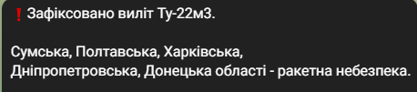 Повітряні Сили України повідомляють про виліт Ту-22м3.