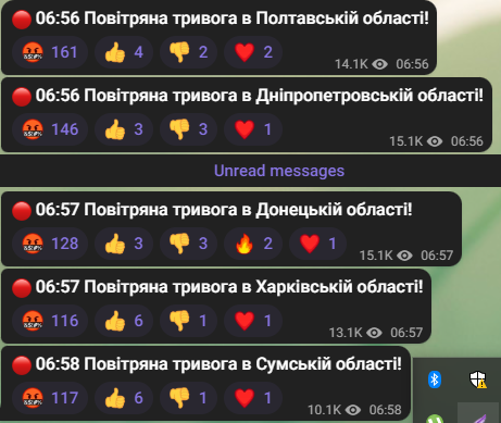 Вранці, 29 червня, близько 7 ранку в Україні почала лунати повітряна тривога. Це вже третя повітряна тривога за останні 12 годин.