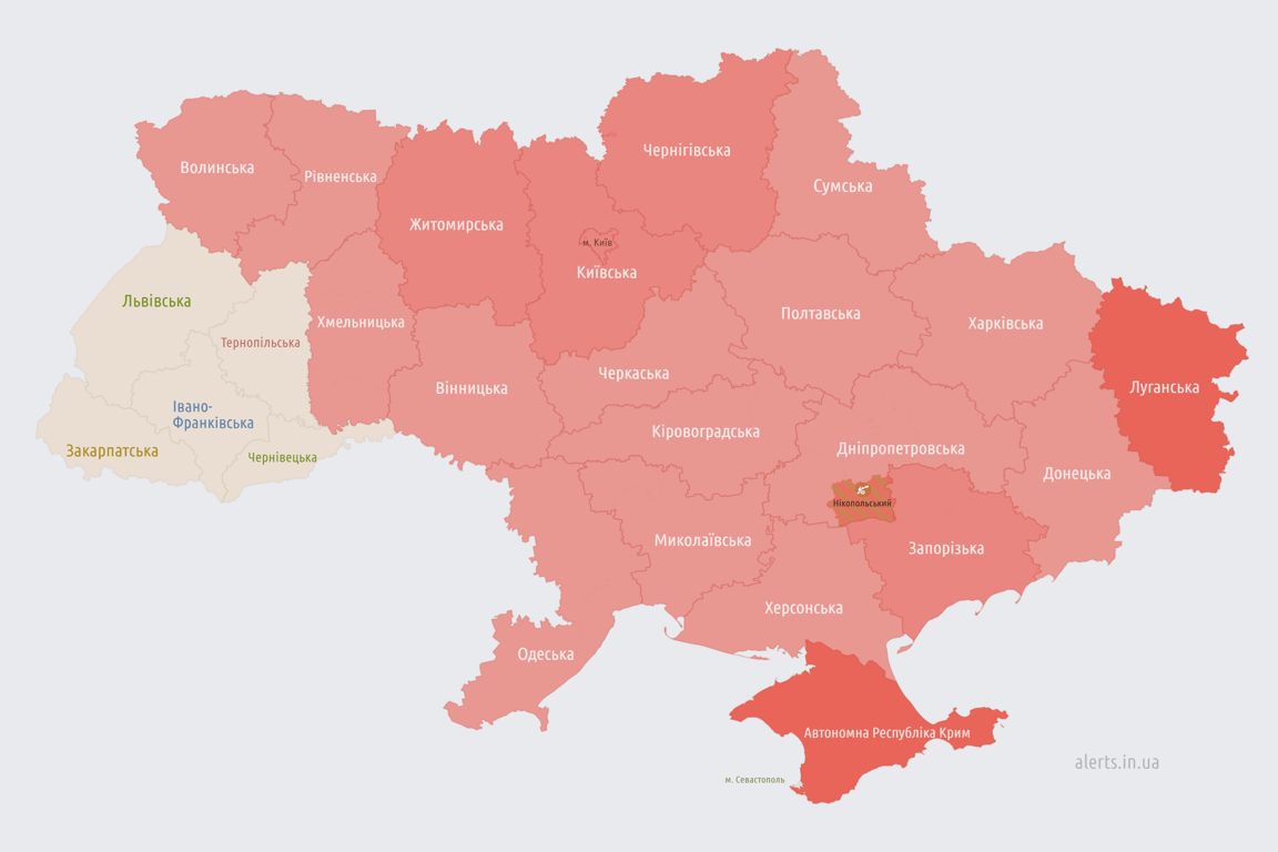 Оновлено 01:27. "По областях працює ППО", — повідомляють моніторингові канали.