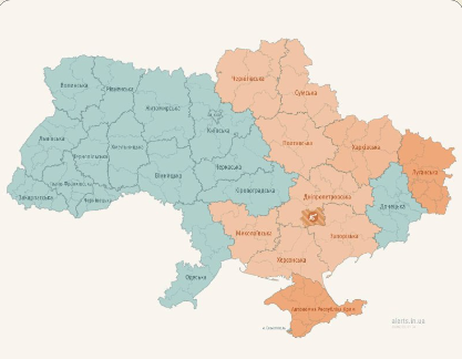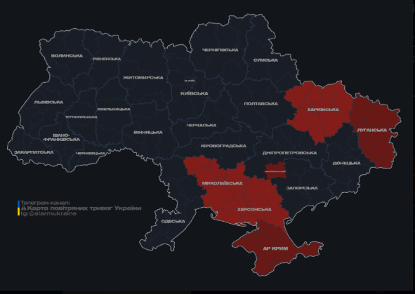 Мапа повітряних тривог збільшується. Наразі вона виглядає так: