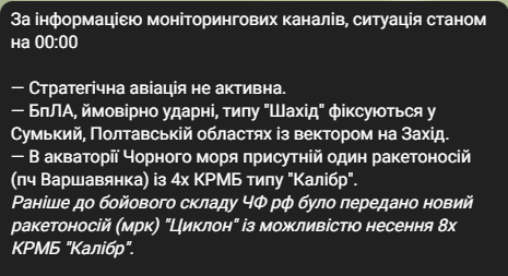 Також повідомляється, що ворожі безпілотники рухаються у бік столиці. Тож усіх просять перебувати в укритті.